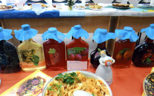 На красиво украшенных и оформ­ленных столах Татьяны Духовниковой было буквально всё – сушёные яблоки, томаты, различные пироги из капусты, тыквы, смородины, савойской капусты, необычные пирожки-жаворонки, компоты из груши, яблок, вишни, сливы, ранеток.
