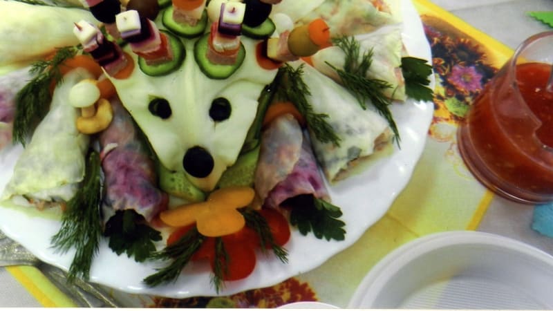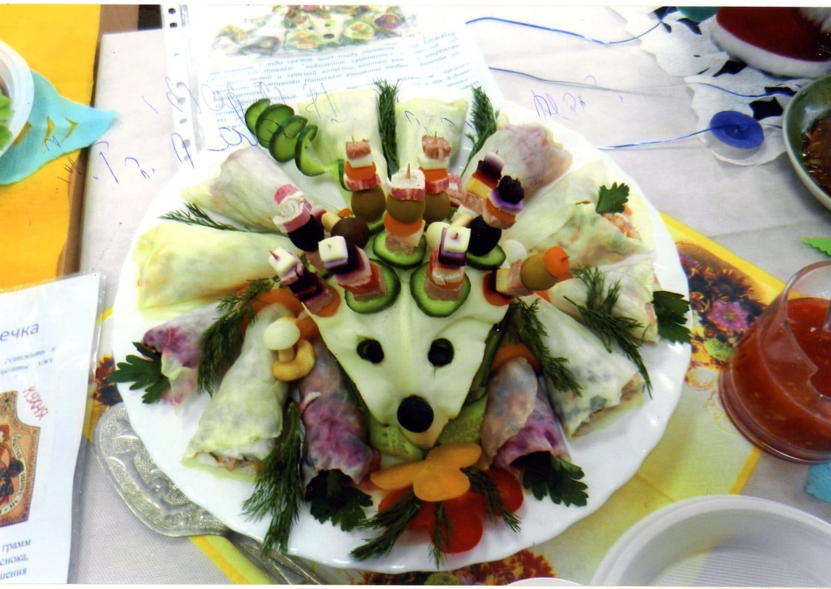 Кроме этого Татьяной Николаевной был красочно и необычно оформлен салат «Колючий ёжик».