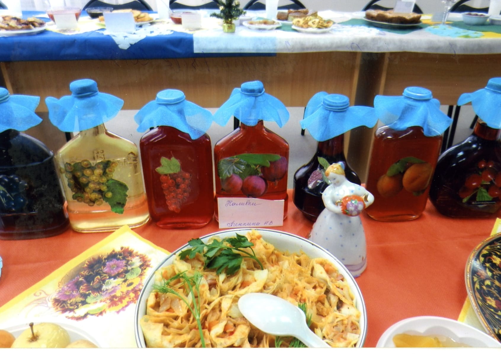 Было много различных заготовок из перцев и баклажанов. В. Ивашева выставила кабачки в томате, кабачки со вкусом грибов. Очень полезную витаминную закуску из петрушки представила Н. Данилюк. Были и необычные блюда, например роллы с капустой Т. Головенко. Шедевром выставки стали драники из кабачка и запечённая в духовке фаршированная тыква Т. Одинцовой. По её словам, все выращенные кабачки уходят на эти оладушки, которые стали любимыми для всех.