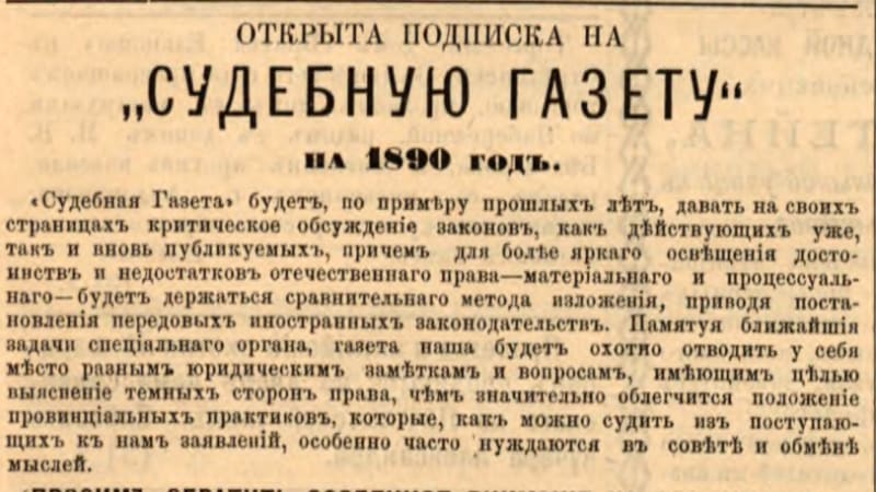 Сегодня там слушалось дело ссыльного Маголита Навруз-Оглы, обвинявшегося в намеренном убийстве. Защищал его некто Андрушкевич, сразу не понравившийся корреспонденту. «Тоже, видимо, из случайных, – подумал он, – чувствуется, что не знает и азов, чего уж там говорить о вершинах юриспруденции!» Коротко говоря, в репортаже, вышедшем в номере от 13 августа 1889 года, он откровенно посмеялся над адвокатом. И был чрезвычайно удивлён, когда выяснилось, что Андрушкевич – кандидат права с двадцатилетним послужным списком, ничем решительно не замутнённым.