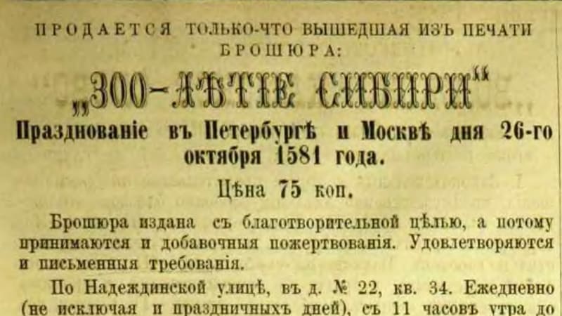 Газета «Восточное обозрение» от 20 января 1883 года: «Городская дума, находя нужным почтить память столь важного события, как присоединение Сибири к России, постановила: