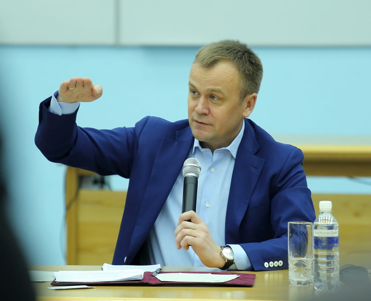 На эту встречу губернатор пришёл сразу после футбольного матча и начал знакомство с рассказа о себе. Вспомнил, как учился в черемховской школе, как гонял мяч во дворе. После школы размышлял, куда поступать: в ИГУ на физфак или ехать учиться в Москву. Потом стоял перед таким же выбором при трудоустройстве. Выбрал институт органической химии в Иркутске, жил в общаге с двумя детьми, дорос до завлаба и ушёл из науки.