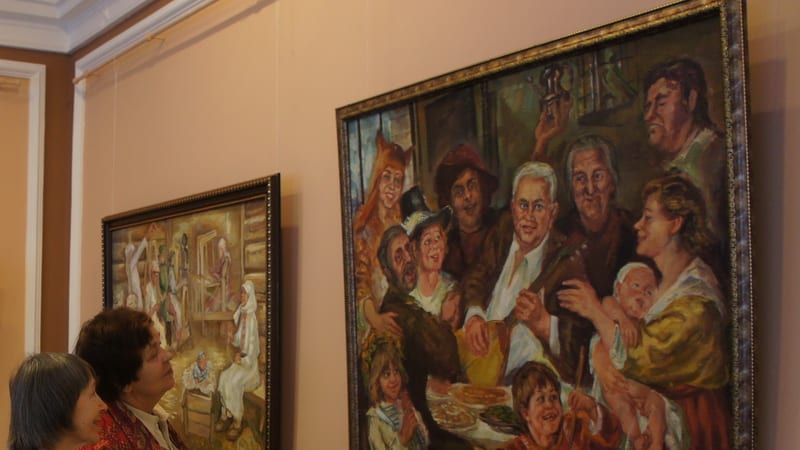 Татьяна Ларёва не перестаёт удивлять и радовать почитателей своего таланта. И нынешняя выставка – яркое тому свидетельство. Здесь она выступает и как живописец, график, и как учёный-искусствовед, и как автор многочисленных статей и каталогов, в том числе монографии «Художники Иркутска» и недавно увидевшей свет книги рисунков и рассказов «Моё деревенское детство». Она же модельер, автор замечательных театральных костюмов. Есть от чего разбежаться глазам!