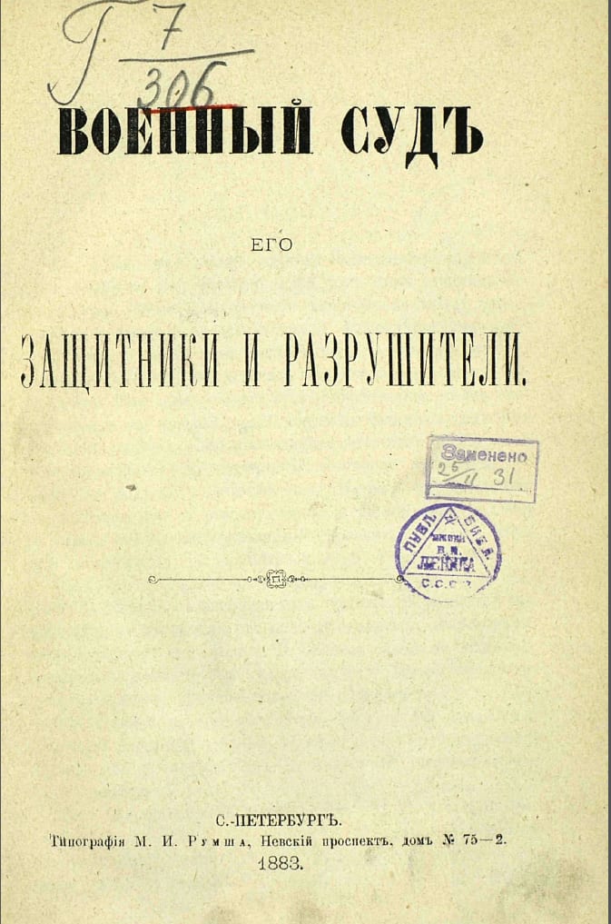 «Очерк 25-летней деятельности ВСОИРГО», «Военный суд, его защитники и разрушители», сборник историко-статистических сведений о Восточной Сибири, воспоминания «Генерал-губернаторство Н.Н. Муравьёва в Сибири».