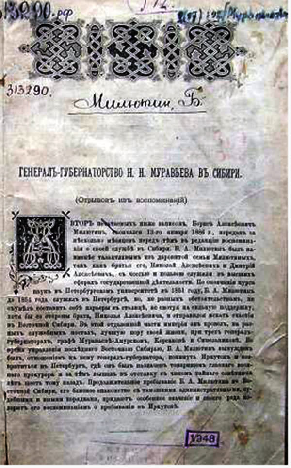 …В зиму 1886 года в Сибири установились страшные холода. Теле­граммы о морозах под пятьдесят градусов на какое-то время отодвинули другие новости, и некролог Бориса Алексеевича Милютина появился в «Восточном обозрении» только десять дней спустя после смерти – в номере от 23 января. Но некролог этот был написан весьма и весьма основательно.