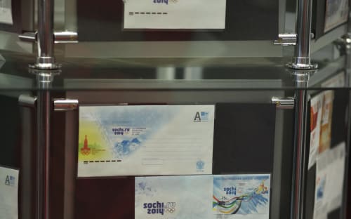 Настоящим украшением выставки стали почтовые карточки с видами окрестностей Сочи и спортивных со­оружений, воздвигнутых специально для Олимпиады. Яркие, различных размеров, они сразу же привлекают внимание посетителей. Рядом с ними размещены олимпийские почтовые марки. «Традиционно вышли марки с талисманами и эмблемой зимних Игр. Мне нравится серия марок, на которых изображены наши легенды спорта: Фирсов, Боярских и другие. Насколько я знаю, в основной тематике олимпийской символики изначально этот выпуск не числился. Но он уместен: молодые должны знать, на кого следует равняться, когда будут защищать честь России на Олимпийских Играх», – добавил коллекционер.