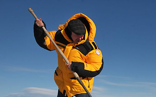 На первый взгляд, работа ледового капитана однообразна, утомительна и даже скучна – машина носится по льду вдоль и поперёк, Сан Саныч отмечает путь по gps-навигатору, пристально всматривается в ослепительное поле окаменевшей воды, неодобрительно качает головой, время от времени останавливается, подходит к разрывам, осматривает их, возвращается в машину – и всё начинается заново. Становые трещины отмечены сплошным невысоким валом наметённого в них снега, и Малое море перечёркивают змеящиеся белые линии. Лёд живёт в своём, незаметном человеческому глазу, ритме – двигается, дышит, постоянно меняется… На первый взгляд, лёд представляет собой огромное поле и надёжную опору, не таящую никакой скрытой опасности. Заблуждение, которое ежегодно губит десятки жизней.