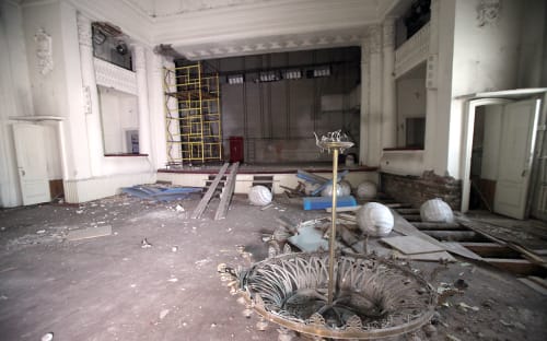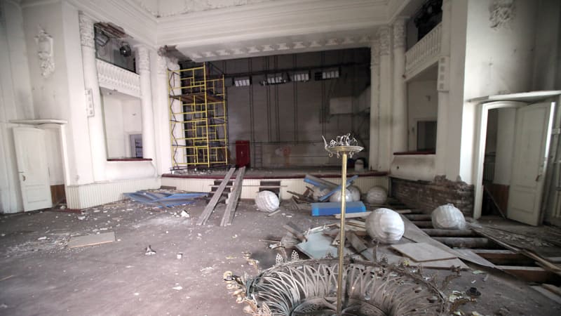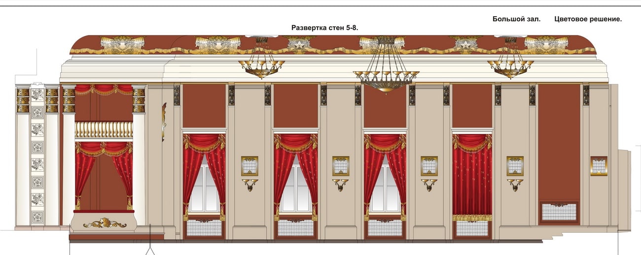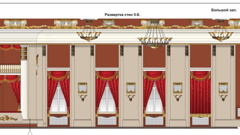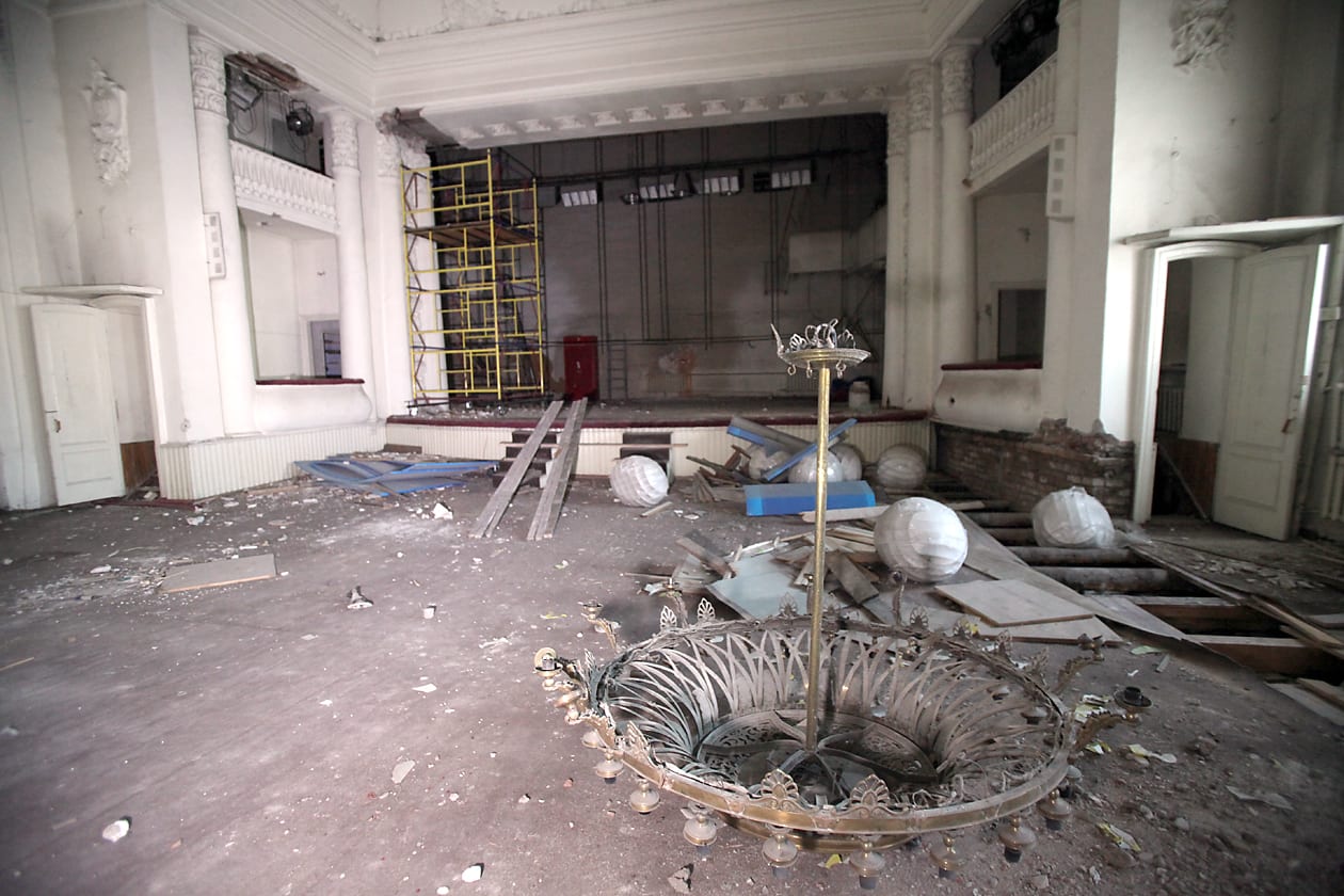 Пустует так называемый большой зал. После обрушения потолка посетителей туда не пускают, а старинную люстру спустили на пол. Помещение находится в капитальном пристрое, возведённом в середине прошлого века. По плану реконструкции, которая предполагает сохранение всех «исторических» тонкостей, в нём откроют зрительный зал со сценой. Лепнину с символикой советской эпохи, двери и даже насыщенные кирпично-красные оттенки стен, тяжёлых штор и кулис планируется восстановить в точности по существующим фотодокументам и архивным описаниям.