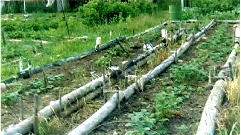 Соорудили из жердей короба высотой примерно 50 см и шириной 100 см, заполнили низ грубым садовым «мусором», а верхний слой, согласно стандартам, состоит из воздухопроницаемой, богатой гумусом рыхлой почвы. И хотя паводковые воды теперь стоят только между гряд, почва в них долго не прогревается. Нет смысла садить землянику рано. Но, когда это наконец случается, посадки развиваются очень активно, ягоды наливаются очень крупными и урожай созревает весомее, чем на стандартных грядках.
