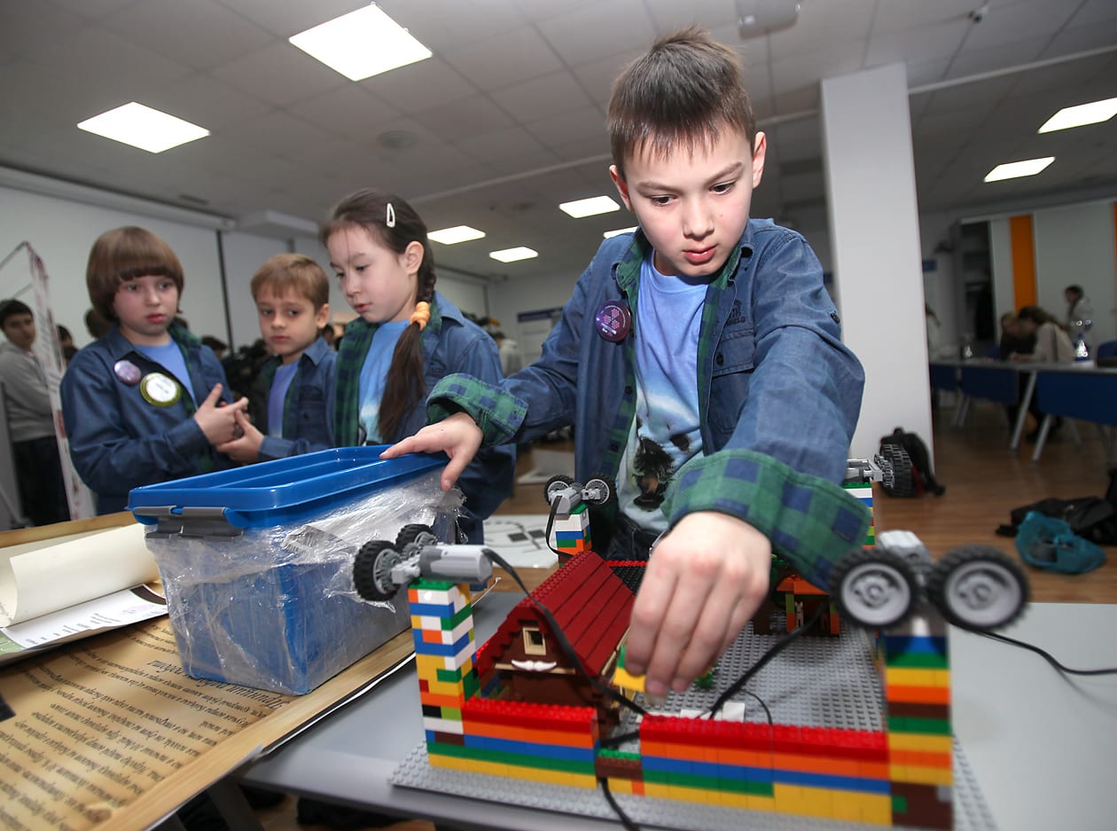 Презентация техники проходила в зале КУИЦ ОАО «Иркутскэнерго». Здесь разместили игровые поля участников разных возрастов. Робототехники постарше сразу заняли центр аудитории, малыши отошли к крайним столами и там начали колдовать над цветными деталями конструктора «Лего». Через несколько минут перед младшеклассниками появилась модель небольшого посёлка с домиком, гаражом, маленьким автомобилем и высоким забором. На четырёх углах ограждения разместились колёса, соединённые проводами с небольшим моторчиком. «Мы придумали, как небольшие деревни спасти от урагана. Вот эти ветряки улавливают потоки воздуха и перенаправляют их подальше от жилых домов», – рассказал непонятливым журналистам капитан команды иркутской школы № 80 второклассник Макар Рябов.