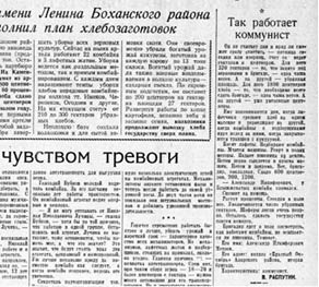 Действительно, как пелось тогда в знаменитых «Трое суток шагать, трое суток не спать…», – всего четыре с небольшим десятка строчек. На них под аншлагом через всю первую страницу газетного номера «Товарищи хлеборобы! Пример передовых колхозов зовёт: темпы жатвы удвоить и план хлебозаготовок выполнить досрочно» едва ли сразу остановится взгляд и обратит на себя внимание подпись – «В. Распутин».