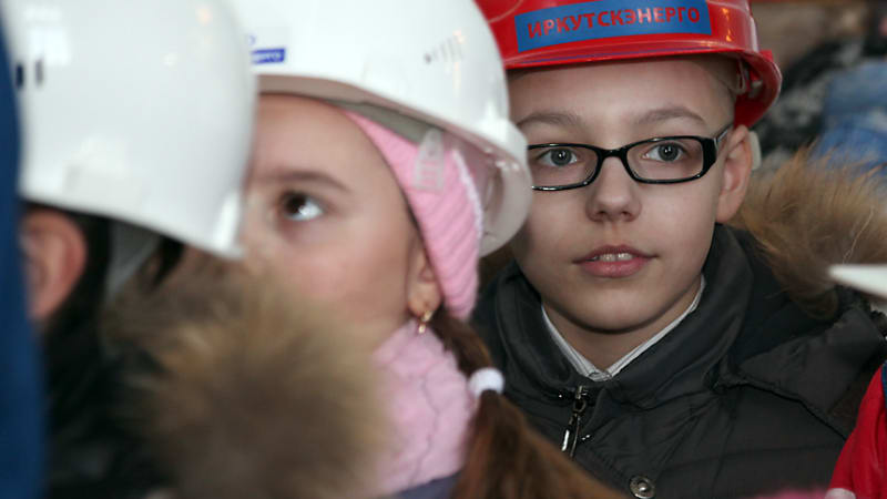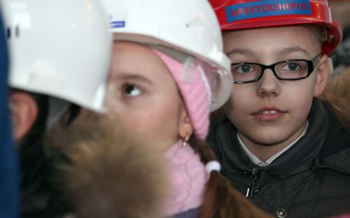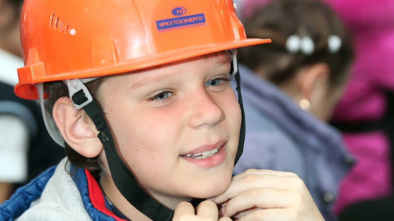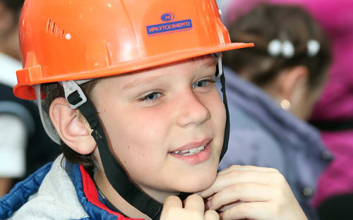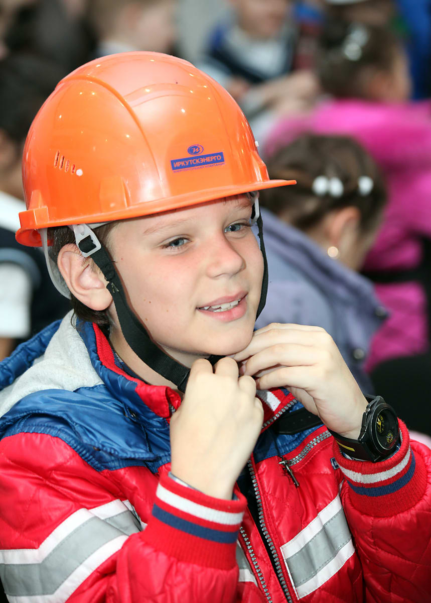 10 лет, если и слушают, то вполуха. Куда больше их интересуют каски, разложенные красивыми рядами на столе. Спустя ещё пять минут после завершения объяснения им разрешено примерить оранжевые и белые защитные головные уборы. «Сейсмоустойчивость Иркутской ГЭС – около 9 баллов, значит, никакие землетрясения ей не страшны», – под эти слова третьеклашки начинают надевать каски: