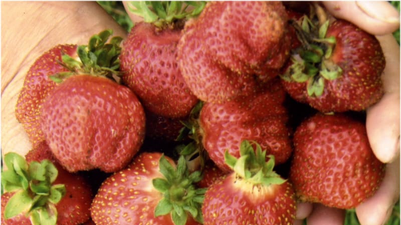 Особенно много подобных неожиданностей (до 30%) возникает при семенном размножении. Однако не исключены они и при вегетативном. Американский великолепный крупноплодный сорт Санрайз более пяти лет радовал урожаем необыкновенно красивых тёмно-красных плотных, гармоничных сладких ягод. Прекрасно адаптированный, зимостойкий и устойчивый к земляничным напастям, он, естественно, был чрезвычайно востребован. Однажды отсаженные на отдельную грядку саженцы, как говорится, в обычном стандартном режиме практически полностью обрели все признаки сорняка типа Дубняк.
