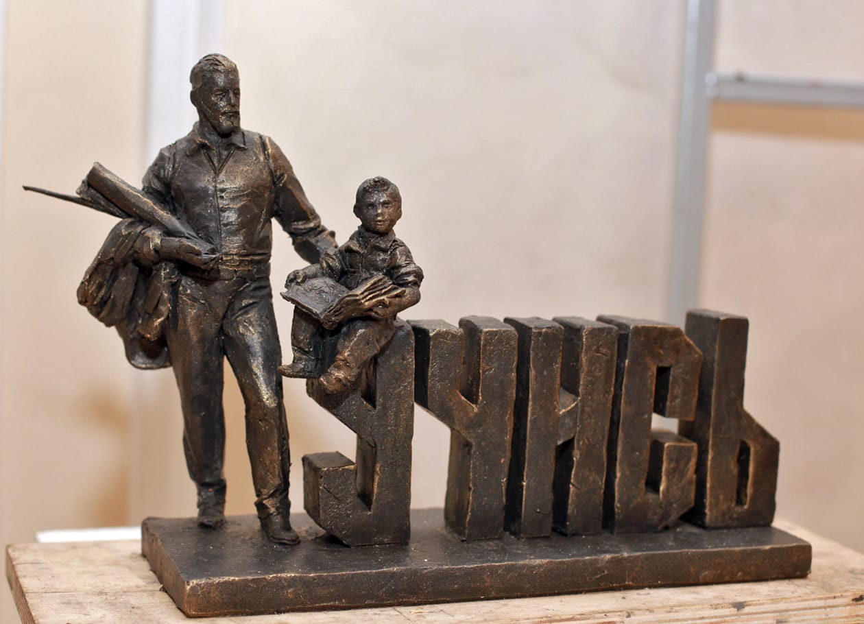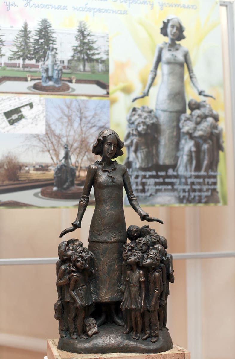 – Многое просто не поймут. Например, пластику постмодернизма. У меня тоже изначально была такая идея, которая бы точно не выиграла. Я слушал «Бесов» Достоевского, и у меня на фоне этого произведения рождались какие-то образы. Учитель был в виде столба, человеческая фигура едва угадывалась, дети вокруг неё были без лиц, как духи, души. Потом пришёл отец и сказал, что это больше похоже на детей Освенцима. И пришлось их сделать счастливыми, пройти через негатив к позитиву. Но основная идея – ещё не сформировавшиеся дети, которые тянутся к учителю, – осталась.