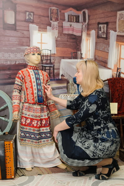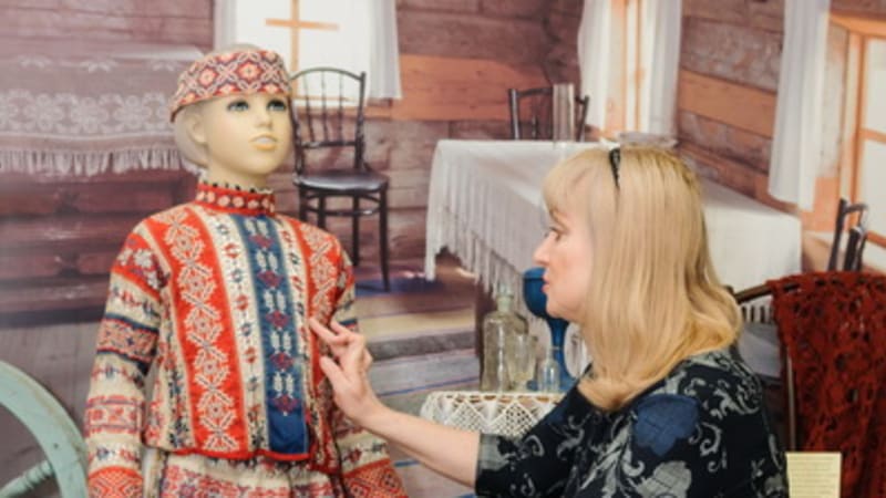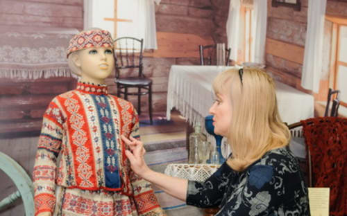 Другой экспонат этого зала – выполненная в миниатюре усадьба зажиточного жителя. Современные дети порой не знают, как выглядят амбары, поленница, деревенский дом с верандой, колодец. А здесь наглядно демонстрируется такой быт, в том числе и благодаря другим предметам обихода – это и посуда, и угольные утюги, и костюмы с вышивкой, и нательные кресты, найденные на всевозможных раскопках.