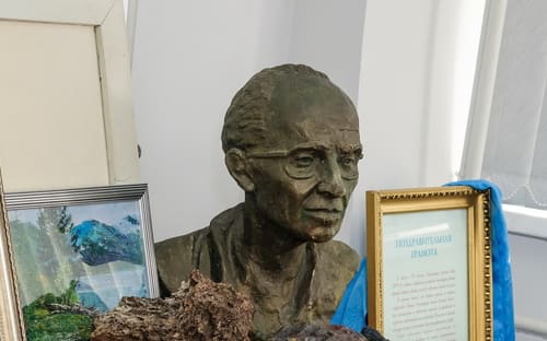 – Когда он обдумывал свои монографии и другие научные работы, всё время мастерил что-то руками, – рассказывает Раиса Дорофеева, учёный секретарь института. – Он не мог остаться равнодушным ни к коряге, ни к сучку, ни к любому другому куску дерева. Стул он сделал себе сам, и выглядит он как трон. А если бы вы пришли к нему на приём, он предложил бы вам сесть на эту табуреточку. Даже урна для мусора была сделана его руками, как и маски на стенах. Интеллект учёного прекрасно сочетался с потрясающей умелостью рук. Для нас его кабинет – и память об этом талантливом человеке, и пример совершенно уникального рабочего места, образец того, как индивидуальность человека раскрывается не только в науке, но и в повседневных мелочах.