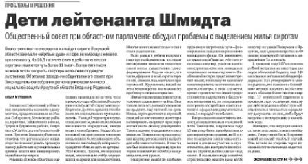 В Кировский районный суд Иркутска с иском к администрации города обратился прокурор, потребовав предоставить выпускнице детского дома жилое помещение во внеочередном порядке. Кроме того, в тот же суд поступили исковые заявления родных брата и сестры Елены, которые тоже имели прописку в попавшем под снос домике. Суд признал, что администрация города злоупотребила властью, допустив продажу участка с домом без учёта жилищных прав детей, вписанных в ордер. Взамен утраченного помещения им на основании Жилищного кодекса РФ должна быть предоставлена по договорам социального найма равнозначная по площади благо-устроенная квартира в границах того же населённого пункта. Причём вне очереди.
