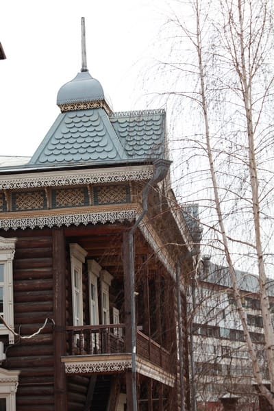 Ещё один архитектурный объект на территории усадьбы – небольшой ресторанчик. Рядом стоит отреставрированное здание амбара – в нём мы планировали разместить Центр иркутского туризма, но местные власти в последний момент поменяли решение. Теперь это двухэтажное бревенчатое помещение занимает комитет культуры Иркутска.