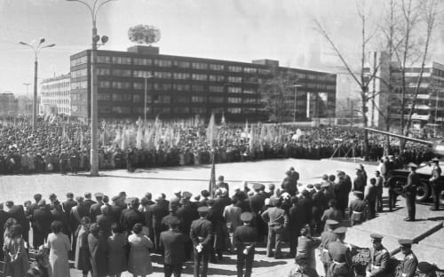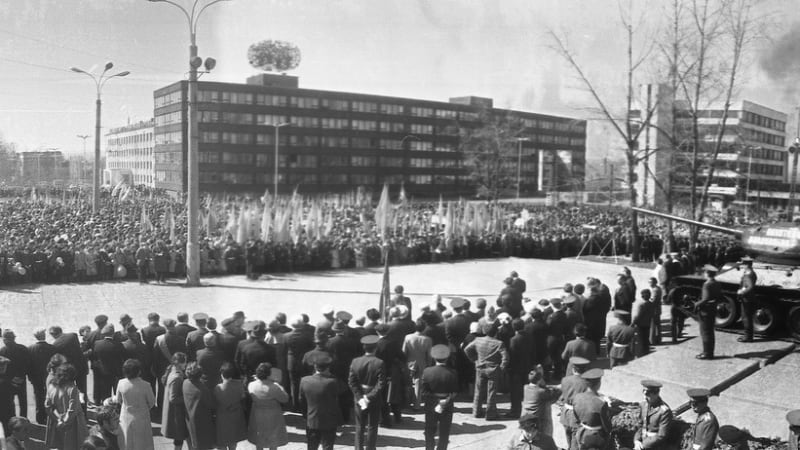 Состоялось факельное шествие, посвящённое памяти павших на фронтах Отечественной войны. Двадцать тысяч факелов вспыхнуло на площади Декабристов, и трепещущий поток пламени поплыл по улицам Декабрьских Событий, Карла Маркса и Богдана Хмельницкого к Памятнику борцам революции, где состоялся митинг. Вспоминали погибших, пели песни, с которыми шли в бой и умирали деды, отцы, братья и сёстры.