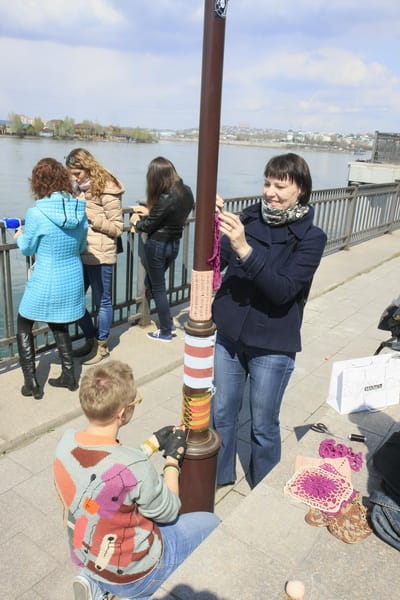 Иркутянки никаких концептуальных задач перед собой не ставили и свои детали вязали исключительно во имя красоты и яркос­ти. «Эту идею я начала реализовывать практически сразу после того, как наткнулась на фотографии в Интернете: читала, изучала тему», – рассказывает организатор первомайской акции в Иркутске Анна Донская. До практики всё могло бы дойти ещё раньше, но, учитывая специфику нашего климата, было решено дождаться тепла.