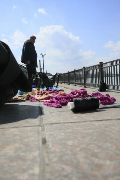 Не таким значительным спустя пару дней выглядит и результат коллективной работы: запасливые ценители прекрасного, как и предполагалось, оторвали от парапета фрагменты несостоявшегося пледа Ольги Михайловны. Видимо, кого-то прельстили бесплатные коврики ручной работы. Если бы уровень культуры иркутян был несколько выше, результатом можно было наслаждаться несколько недель. Впрочем, спустя некоторое время организаторам всё равно придётся взяться за демонтаж: вязание рано или поздно потеряет свой вид.