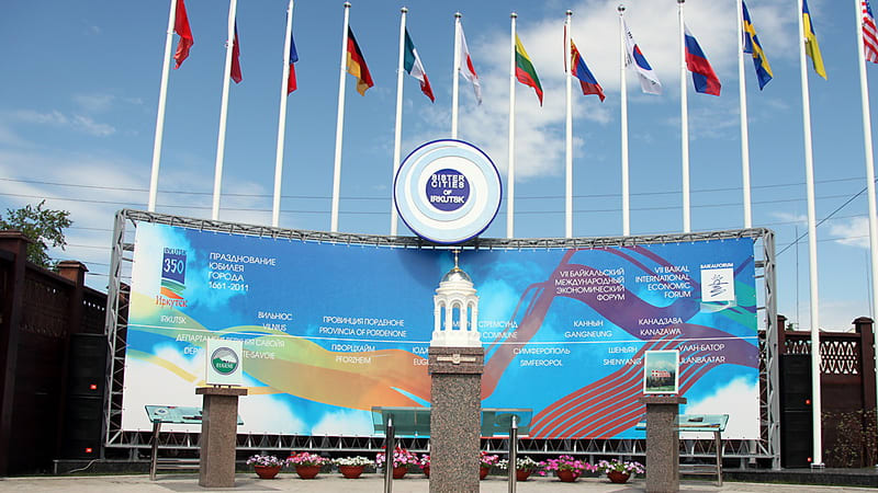 Прелюдия к лекции про две разные городские идентичности занимает не так много времени. Но прежде, чем прогуляться несколько кварталов и занять места в актовом зале Дома офицеров на улице Карла Маркса, нам предоставляется возможность обойти символы городов и территорий – побратимов Иркутска: японской Канадзавы, монгольского Улан-Батора, американского Юджина, китайского Шеньяна, немецкого Пфорцхайма, французского департамента Верхняя Савойя, шведской коммуны Стрёмсунд, итальянской провинции Порденоне, российского (с недавних пор) Симферополя, южнокорейского Каннына, литовского Вильнюса, чешского Карловарского края, польского Ченстохова и хорватского Приморско-Горанского региона.