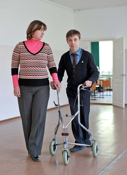 – Сколько мы учились, сколько школ прошли, проблем не было. Конечно, задавали вопросы, но мы к этому давно привыкли. Например, ребят всегда интересовали Никитины трёхколёсные ходунки, они так и спрашивали: «Какой это у нас велосипед?» Шумахером называли, – улыбается мама Никиты. – В коляску Никита пересел недавно, стал уставать. Ведь с возрастом заболевание легче не становится, негативные изменения связаны с ростом мышц и костей. А в своё время мы специально возили Никиту в Санкт-Петербург и подбирали ему ходунки. Сейчас это средство передвижения уже и собес начал выдавать. Ещё нужно было поставить Никиту на них, понять, в каких он сможет ходить, а в каких нет. А вот велосипед специальный так и не смогли купить, он дорогой очень был – около 600 долларов. 12 лет назад для нас это была большая сумма, к тому же доставка из Германии дорого обходилась. Впервые такой велосипед мы в Евпатории увидели. Сейчас уже думаем о скутере для инвалидов, но сомневаемся, что у нас можно проехать на нём куда-нибудь. Хотя на скутере, наверное, легче, чем на коляске с электроприводом. Она у нас дома почти без дела стоит, очень громоздкая, её вес около 80 кг. Спустить такое с нашего третьего этажа одному человеку невозможно, проехать по городу сложно, а поднять потом в квартиру – проблема, и на улице не оставить. Так что школу Никита посещает на обычной инвалидной коляске. Кому-то из нас всё время нужно быть рядом – спускать с этажа на этаж. Ну а чтобы затащить Никиту в лицей и вывезти после учёбы, нужна мужская сила.