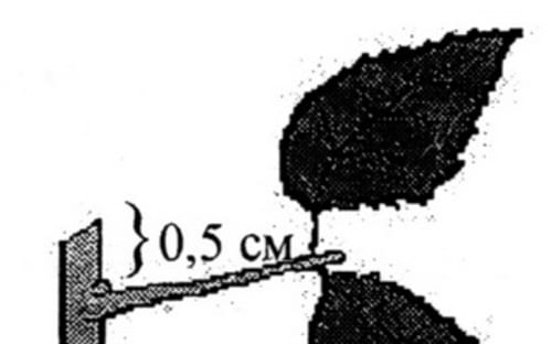 Теперь можно рассказать и о самом черенковании. Сначала нужно обратить внимание на почки в пазухах листьев: они должны быть нормально сформированы, хорошо видны в пазухе листа, с округлой макушечкой. С высокими, конусовидными почками желательно черенки не делать. Для работы нужен острый как бритва нож, секатор для такой работы не годится. Нарезаю черенки, состоящие обычно из двух почек. Под нижней почкой делается косой срез, длинная сторона среза не менее 1 см со стороны почки. Над верхней почкой оставляю пенёк не более 0,5 см, можно прямой или слегка косой, в этом случае длинная сторона среза должна быть над почкой. С нижней почки лист убирается полностью, верхний лист укорачиваю, оставляя только две листовые пластинки. Черенок готов. Перед нарезанием черенков нужно приготовить раствор корневина по инструкции, развести не водой, а очень слабым раствором гумата. Нарезанные черенки ставятся в эту смесь на сутки.