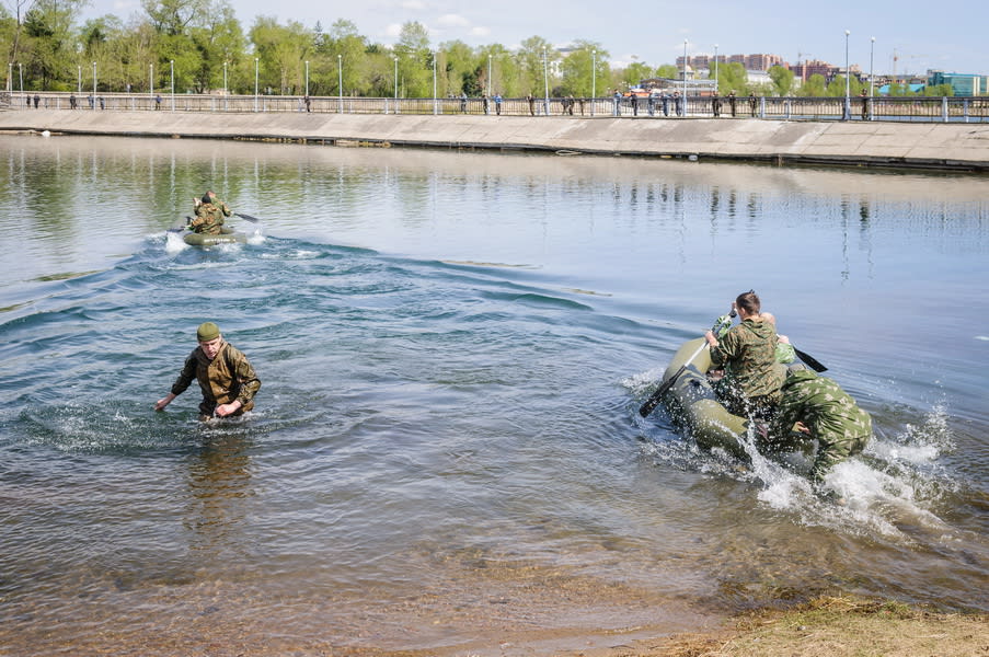 Во вторник, 20 мая, на набережной Ангары и на острове Юность состоялась традиционная эстафета спецподразделений местных силовых структур. Пять команд по двенадцать человек в полной боевой выкладке бежали на скорость несколько этапов, попутно выполняя боевые задания – заряжая автомат и поражая две цели с разной дистанции, транспортируя «раненого» товарища, преодолевая полосу препятствий под автоматным огнём в условиях полного задымления, сплавляясь на резиновой лодке и метая ножи на меткость.