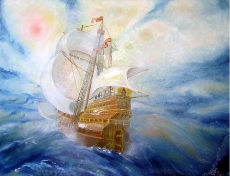 Я не случайно написал о необычном звучании многих полотен. Взять такие её картины, как «Бермудский треугольник», «В поисках цивилизации», «Рождение звезды», – их сюжеты продиктованы стремлением художницы проникнуть в тайны мироздания, включая то же созвездие Орион и его пылевидную туманность, газовое облако, в котором происходит интенсивный процесс образования звёзд.