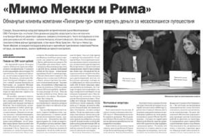 отель, трансферты, страховые полисы. При подписании договора выложила 83 тысячи рублей. И, естественно, не сомневалась, что фирма «Пилигрим-тур» столь же тщательно исполнит свои обязанности по договору – свяжется с непосредственным исполнителем услуг ООО «Пегас» и забронирует так называемый турпродукт, после чего выдаст клиенту все сопроводительные документы и пожелает счастливого пути.