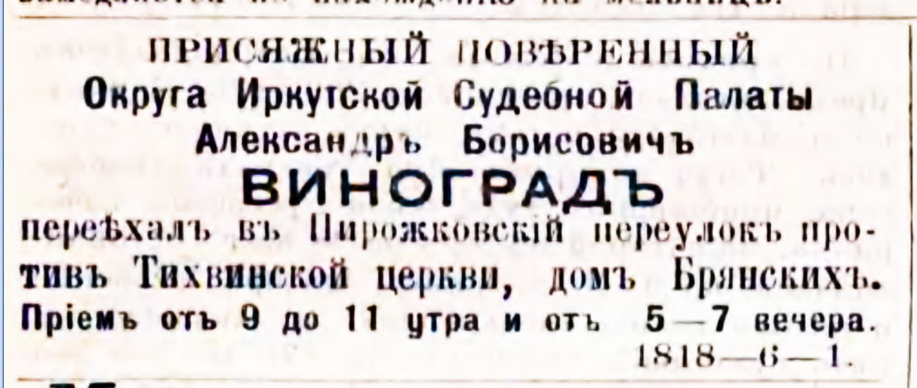 – Столь непристойные запросы встречаются разве что у «аблакатов» из отдалённых уездов. Что до Иркутска, то на Большой, в магазине Макушина, продаётся Справочная и адресная книжка на нынешний, 1899 год, и в ней среди разных такс (почтово-телеграфных, на переправы, на извозчиков) представлены и расценки на услуги поверенных. Если же обыватель листает один месяцеслов, он и отдаёт свои деньги первому встречному «ходатаю», не спросив даже и документа. А потом кричат, будто бы девиз каждого адвоката: если у ближнего есть рубаха, сними её; а если есть две, то возьми себе обе!