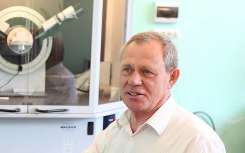 Анатолий Сапожников работает в Институте геохимии с 1970 года. Профиль работы – рентгеноструктурное изучение кристаллических веществ, в том числе и минералов. Как говорит учёный, «мы решаем разные задачи с помощью методов рентгеновского анализа, но основной задачей остаётся изучение природных минералов». Именно к Анатолию Сапожникову иркутские геологи чаще всего несут свои открытия на детальное обследование. Он любовно берёт в руки камешек с синими, серыми и белыми вкраплениями и объясняет: