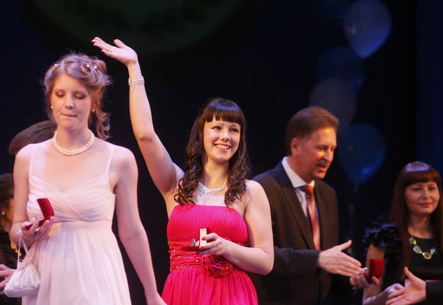 Когда подошло время самой волнительной и долгожданной части, вручения медалей, коридоры театра опустели: ребята перебрались в зал. Выпускники шутили, смеялись, бегали от кресла к креслу, чтобы успеть поговорить с друзьями, но то и дело поглядывали на сцену, боясь пропустить появление ведущих. Наконец церемония началась. Поздравил лучших выпускников заместитель губернатора Сергей Дубровин: «Желаю вам большого счастья, трудных, но замечательных побед! Мы верим в вас, мы надеемся на вас. Сегодня у вас первый по-настоящему взрослый праздник. Мы надеемся, что именно вашими усилиями Иркутская область станет самым великим регионом нашей страны».