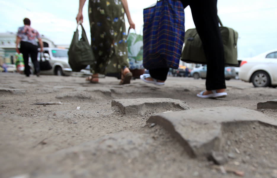 Томящиеся на палящем солнце в ожидании трамвая люди не производят впечатления желающих поговорить, однако высказать свою позицию по поводу тротуара готовы многие. «Не пройти ни зимой, ни летом. Падают, ноги ломают, и никому дела нет, – возмущается крупная женщина, обмахиваясь Юлией Шиловой в мягкой обложке. – Люди с чемоданами, с сумками, тяжести такие, а здесь ни пройти ни проехать. Машины ещё где попало поставят, так хоть взлетай». Собравшиеся вокруг пешеходы одобрительно кивают. «Я с коляской пробовала пройти, – сдержанно добавляет молодая женщина, представившаяся Анной. – Теперь стараюсь как-то без неё обходиться». Когда о своих впечатлениях рассказали немецкие студенты с огромными рюкзаками, проблема получила международный резонанс: «Похоже на следы бомбёжки», – осторожно произносят они и смягчают критику улыбкой.