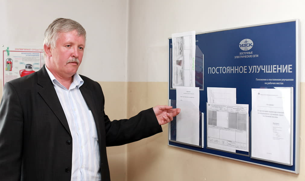 Программу улучшения производственной системы в «Восточных электрических сетях» активно внедряют с апреля нынешнего года. Всего за два месяца работы управляющий комитет филиала получил от сотрудников десятки идей по оптимизации, некоторые из них уже удалось реализовать. Для оперативного сбора рационализаторских предложений создали специальную систему. На опытном участке – производственной площадке Эхирит-Булагатского района электросетей (РЭС) – появились стенды, на которых разместили информационные материалы, посвящённые программе оптимизации производства. К ним прилагаются бланки, на которых любой сотрудник может написать своё предложение по улучшению работы своего подразделения.
