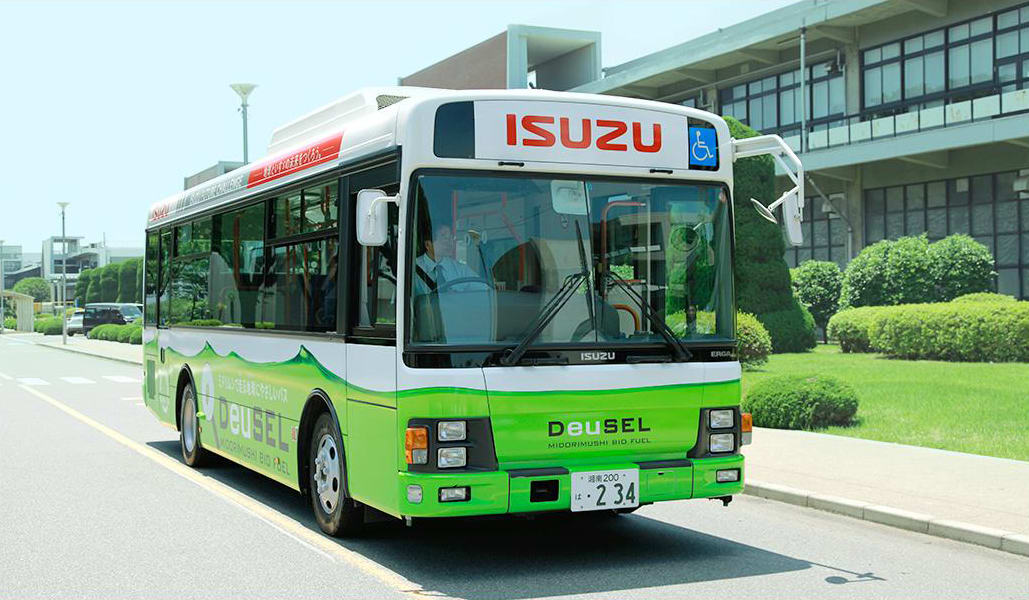 Пока воспользоваться им могут только работники Isuzu Motors и посетители предприятия, однако в будущем экологически чистый автобус будет доступен местным жителям. В качестве топлива автобус использует «девзель» (производное от «евглена» и «дизель») – смесь, 99% которой составляет солярка, а оставшийся 1% – экстракт из евглены зелёной. В процессе фотосинтеза эта одноклеточная водоросль не только производит кислород из углекислого газа, но и выделяет энергию, что делает её ценным сырьём для производства биотоплива. К тому же, отмечает производитель, её, в отличие от традиционных для этой отрасли культур вроде рапса или кукурузы, можно выращивать в заводских условиях. Цель корпорации Euglena, основанной в 1998 году, состоит в том, чтобы к 2018 году наладить крупнотоннажное производство топлива, на 100% получаемого из одноклеточных водорослей.