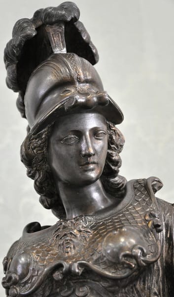 – Посмотри, какая красавица! – он любовно оглаживал бронзовые бока статуи. Она стояла, опершись на щит, придерживая рукой копьё. В другой руке – оливковая ветвь, подарок афинянам. Через плечо перекинута эгида – козья шкура. Часть доспехов украшена головой медузы Горгоны – подарок, преподнесённый ей древнегреческим героем Персеем. Скульптор придал лицу тонкие черты, вся фигура – олицетворение женственности. Постамент из чёрного мрамора, под ноги брошена шкура льва. Высота статуи вместе с постаментом – больше метра. В корпус статуи вмонтированы часы – большой чёрный циферблат с золотыми римскими цифрами, удачно сочетающий с общей композицией всего произведения».