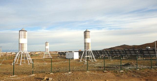 Итак, энергокомплекс в Онгурёне, по информации Головщикова (он в очередной раз побывал там в марте в составе областной комиссии), включает 36 солнечных фотоэлектрических панелей (3 ряда по 12) стационарного исполнения, наклонённых на юг, максимальной мощностью (когда солнце в зените летом) 81 киловатт, три ветровых электрогенератора (вертикальные роторные турбины конструкции Болотова) суммарной номинальной мощностью 15 кВт, аккумуляторные батареи ёмкостью 6700 ампер-часов и автоматизированную дизельную электростанцию мощностью 100 кВт.