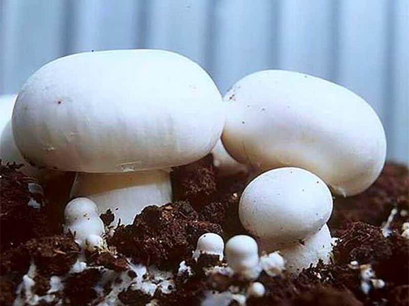 Каким должен быть субстрат? Для него используют навоз крупного рогатого скота (но лучшим будет конский), солому, картофельную или томатную ботву плюс гипс, известь, мочевину. Всю эту массу уплотняют и закрывают плёнкой. Необходимо постоянно следить, чтобы компост не был слишком сухим или влажным. Через 15–20 дней субстрат готов. Из него делают грядки высотой примерно 25 см. А при температуре в грядке 25–27 градусов начинаем садить грибницу. Её кусочки величиной с голубиное яйцо рассаживают в шахматном порядке по схеме 20х20 см. Техника посадки проста – приподнимается слой компоста и в это углубление кладётся грибница. Для усиления контакта грибницы с компостом требуется хорошее уплотнение. Ко­гда кружки проросшей грибницы выйдут на поверхность и сольются, на компост насыпают землю слоем 3-4 см. Плодоношение начинается через 35–40 дней и длится 2-3 месяца. Сигнал к сбору – если плёнка у пластинкок грибов натянулась, но не лопнула, а сами пластинки бело-розового цвета. Ни в коем случае нельзя срезать грибы ножом, как в лесу. Их осторожно выкручивают одной рукой, другой придерживая грунт. Таким образом вы сможете сохранить целостность верх­него слоя. А образовавшиеся ямки надо присыпать покровной землёй. После окончания уборки урожая использованный компост можно рассыпать в огороде: для повторного выращивания шампиньонов он становится непригодным, зато огород удобряет хорошо. К примеру, урожай огурцов повышает на 50 процентов.