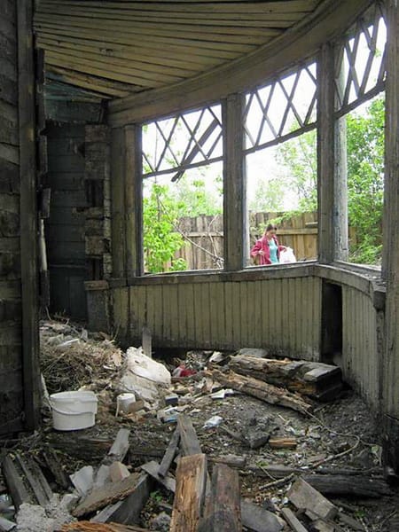 Услышав эту историю, «прогульщики» направились в Усолье-Сибирское. Не столько за новыми фактами из биографии архитектора, сколько за тем, чтобы убедиться, в каком плачевном состоянии пребывает дача Рассушина – единственный, между прочим, памятник истории и культуры федерального значения на весь город. «С девяностых годов дом стоит без охраны, вход туда свободен, – грустно констатировала заведующая отделом экскурсионно-массовой работы Усольского историко-краеведческого музея Ирина Михаханова, встретившая экскурсантов. – Время неумолимо, особенно если учесть, что дом деревянный и построен в 1913 году». Действительно, в отличие от хорошо сохранившегося иркутского особняка вид загородной дачи удручает: окна зияют выбитыми стёклами, часть из них вовсе заколочена разбухшими от влаги листами ДВП, стены обожжены, даже массивные колонны перед входом, выполненные из цельных стволов, покрыты глубокими трещинами. «Ой, беда! Боже мой! Да сколько раз его жгли-то?!» – слышатся возгласы в группе тех, кто не поленился в субботний день прокатиться за сто километров от Иркутска. Интерьер оправдывает худшие ожидания: обвалившиеся перекрытия, горы строительного мусора и вездесущих пустых бутылок и полиэтиленовых пакетов.