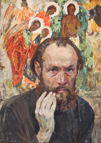 Особое место в тврчестве Аркадия Вычугжанина занимает «Портрет скульптора Олега Ряшенцева», в котором первый и последний раз художник отказывается от достоверного рассказа и обращается к метафоре. Остросовременный по форме, внутренне событийный «О. Ряшенцев» остается для меня загадкой.