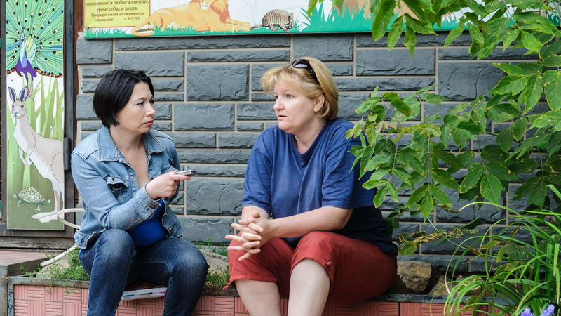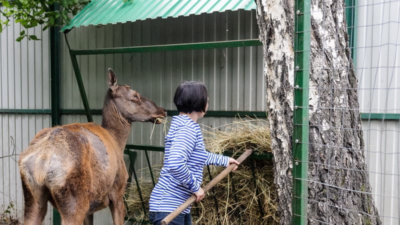 Коробочки с йогуртом, нарезанные арбузы и фрукты, нашинкованные овощи, нарезанный хлеб – всё это разносится по вольерам. Черепахи, грызуны, туканы, попугаи, сурикаты должны получать свою порцию вкусной и полезной еды. Точно так же, как и олени, косули, альпака и Циля, старая изюбриха, когда-то списанная из цирка и сейчас проживающая свою законную пенсию в иркутском зоопарке. Первое время Циля ходила исключительно по кругу – как она привыкла это делать на цирковом манеже. Животные в цирке и после работы в нём – отдельная больная тема, и, увы, не каждый зверь обретает покой и уход после тяжёлых трудовых лет. Косули, альпака Алмазик и Циля живут в одном вольере. Но и здесь кипят страсти: