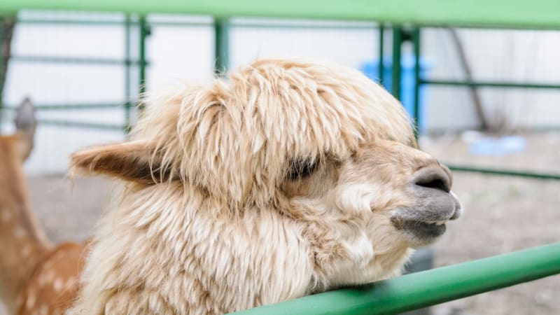 Драки за сено, которое мы вилами переносим в просторный вольер к этой странной компании, не происходит. Сена хватит всем.  Самый экзотичный товарищ в этом вольере, конечно, альпака – одомашненный вид лам, обитающий в странах Южной Америки. Скоро год, как Алмазик живёт в Иркутске и живёт прекрасно, радуя посетителей своим заокеанским, южноамериканским, «ненашенским» видом.