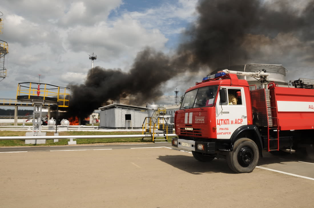В ОАО «АНХК» прошли масштабные показательные учения по ликвидации аварии с разливом нефти и пожаром