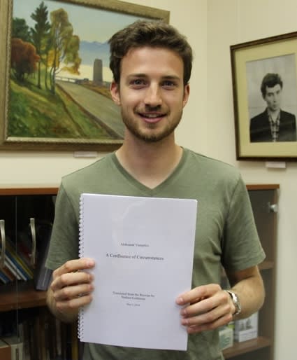 С Натаном Голдстоуном нас познакомили в начале минувшего учебного года. Американский стажёр приехал к нам в университет по специальной программе с целью перевода произведений Александра Вампилова на английский язык.