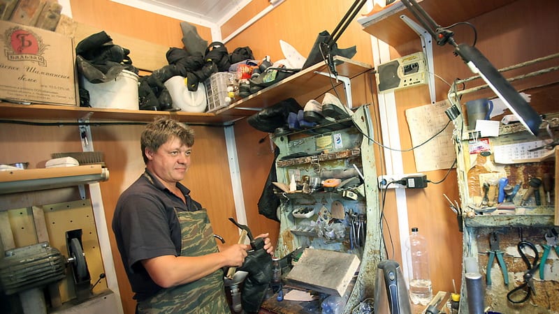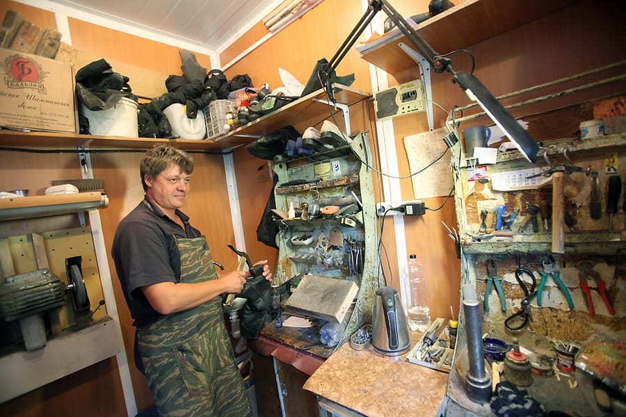С 90-х вообще многое изменилось. «Клиентов стало меньше. Намного меньше. Теперь двери не выламывают, – говорит Владимир. – Раньше было несколько «сапожек», и все в центре. А сейчас в каждом районе, в каждом магазине мастер сидит, приезжих много». Качество работы мастеров, по мнению Владимира, тоже стало хуже: «Раньше были внезапные проверки ОТК. Приезжали, смотрели, кто делает и как, разряды присваивали, – рассказывает он, сам, кстати, мастер шестого разряда. – Сейчас гвозди научился забивать – уже сапожник. Сегодня сапожник, завтра шпатлёвщик, послезавтра мясо на рынке разделывает. После таких народ к нам идёт и плачет».