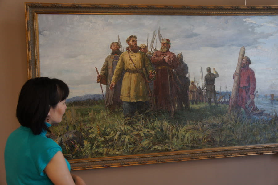 Дмитрий Баркалов (1914–1987) – родоначальник династии художников Баркаловых, вошёл в художественную жизнь в 1950-е годы. Его судьба типична для большинства художников первой половины ХХ столетия. Он родился в большой крестьянской семье и, как многие «дети революции», ушёл в город на заработки, начал работать кузнецом-молотобойцем. В Москве он получил общее и художественное образование. Будущий живописец учился у таких мастеров, как А. Осмеркин, А. Лентулов и С. Герасимов. После окончания Московского художественного института Баркалов преподавал живопись сначала в Иркутске, а затем в Московском педагогическом институте имени В.И. Ленина. Будучи в Иркутске, так же как и А. Руденко, воспитал блестящую плеяду живописцев. На выставке о первоклассном живописном мастерстве Баркалова можно судить по грандиозному полотну «Землепроходцы на Ангаре» (1952).