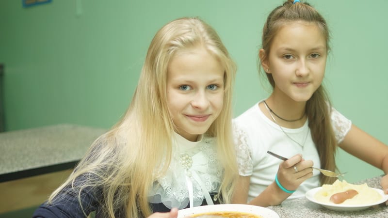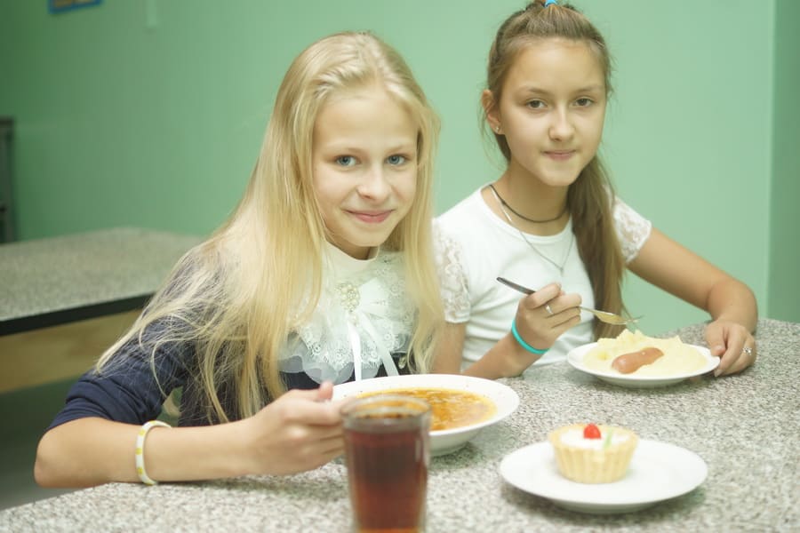 «В школе учатся 600 учеников, около 400 из них питаются в столовой, – рассказывает директор школы Оксана Елясова. – Мы очень любим нашу столовую. Здесь кушают и ученики, и учителя. Представьте, или из контейнера вас накормят и подогреют, или, как у нас, «с пылу с жару», прямо с печки. Есть разница? И ассортимент у нас шире – до шести салатов, два супа, четыре вторых блюда».