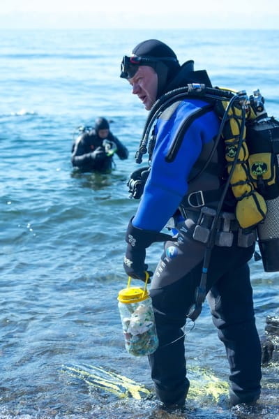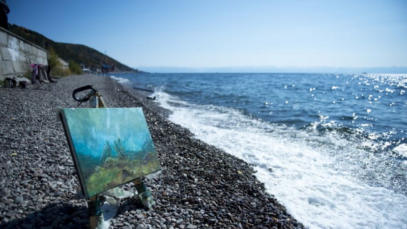 А вот рисовать на дне лучше в Листвянке. Рядом с Байкальском, по словам художника, много технологического мусора.